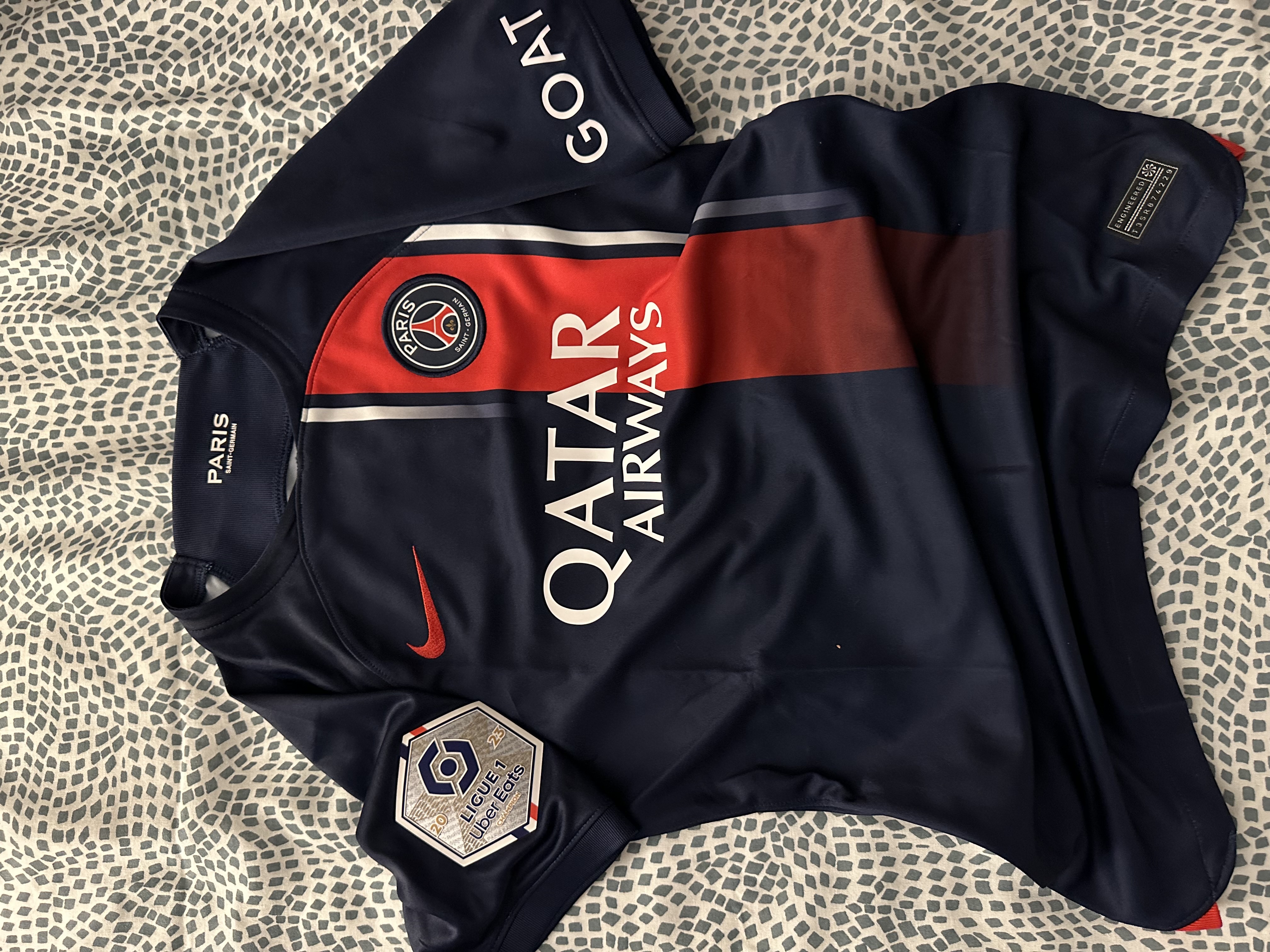 Achat d'un maillot PSG pour un anniversaire. Problème de flocage on n'a plus de E. Voyez en face chez Nike...qui n'a plus de E non plus ! Heureusement il y a Décathlon.