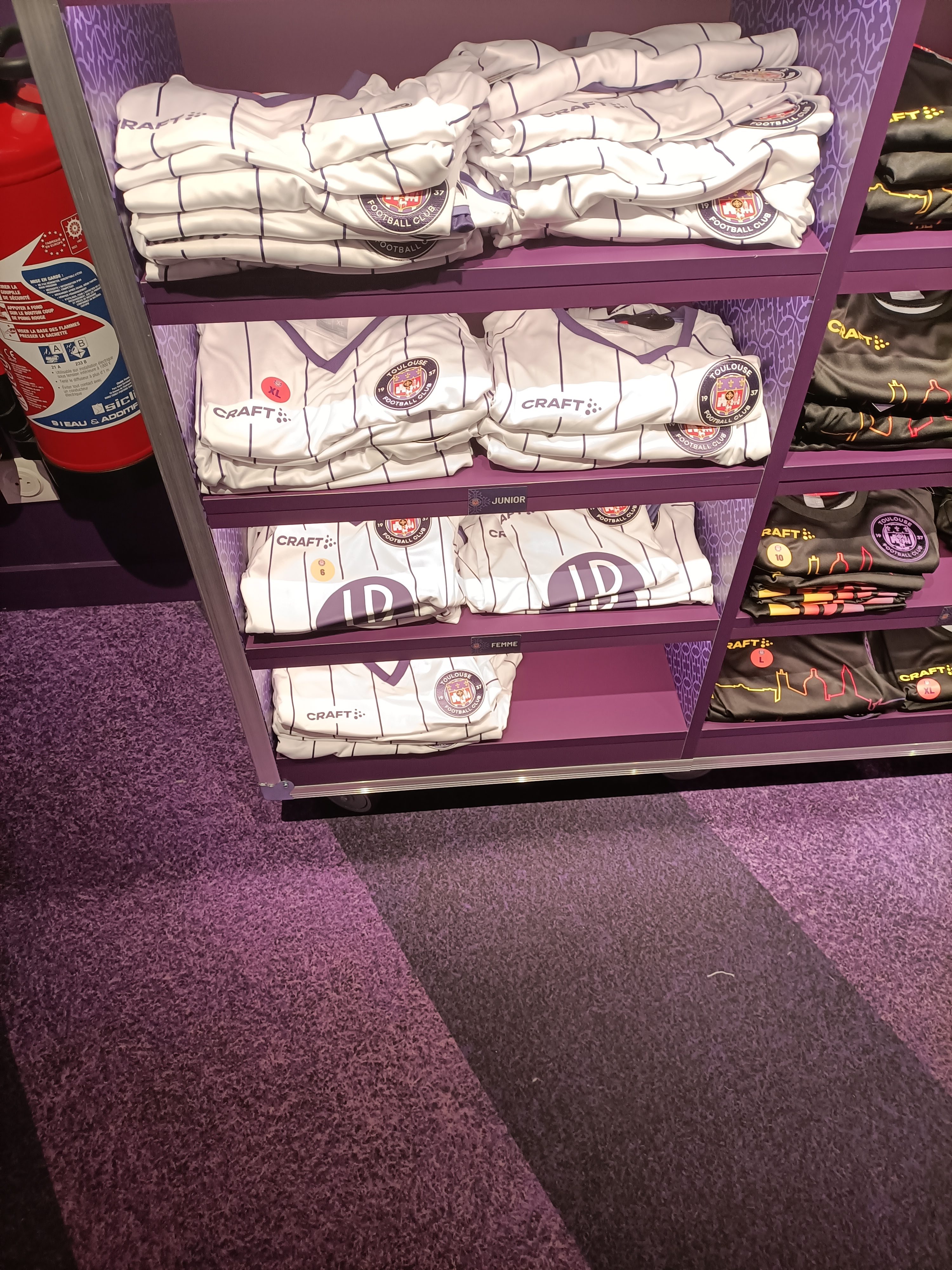 Boutique de l'équipe de football de la ville de Toulouse, petite mais avec choix variés entre gadgets, vêtements, écharpes, casquettes et ballons, la couleur violette rend le tout plus magique, j'ai acheté une écharpe pour l'occasion de la victoire de la coupe de France 2022/ 23 à 15€ (prix raisonnable à mon avis) ça vaut le détour, personnel sympathique et ils parlent aussi très bien anglais.